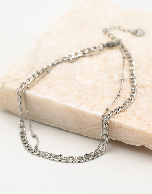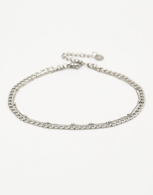 Dubbel enkelbandje met fijne schakels zilverkleurig