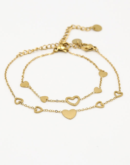 Armbanden vriendschapset hartjes goudkleurig