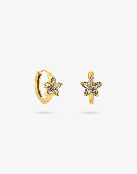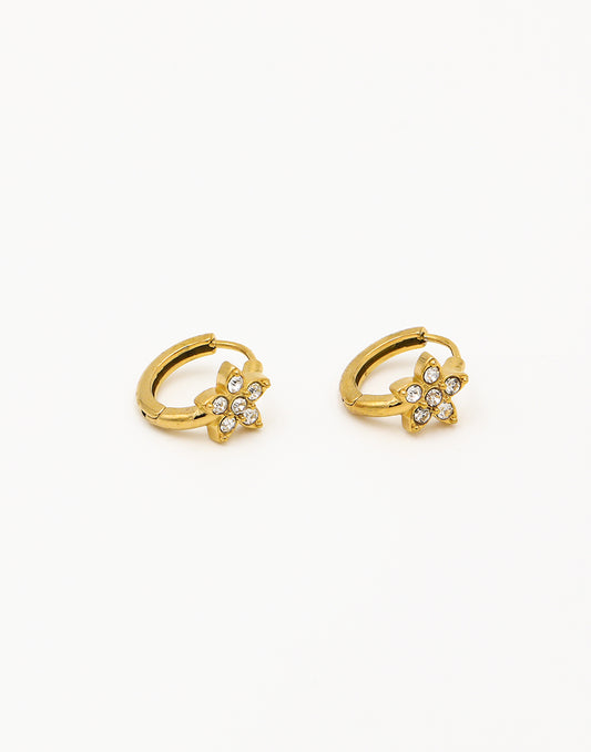 Creolen met steentjes bloem goudkleurig