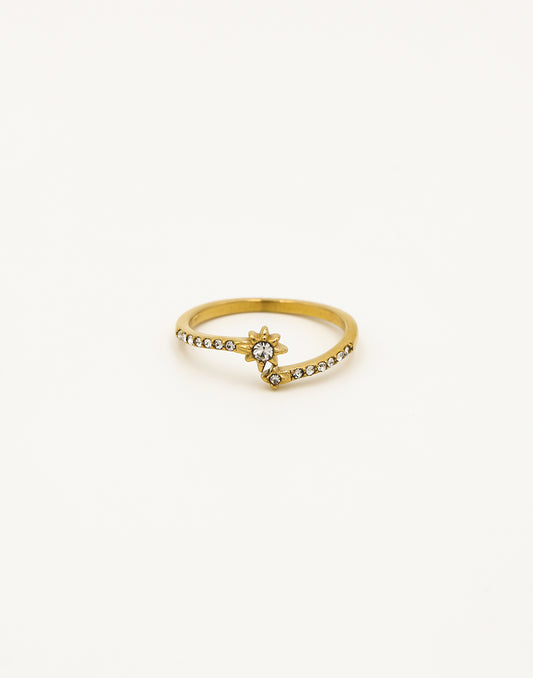 - Goudkleurige ring met morningstar en ronde steentjes