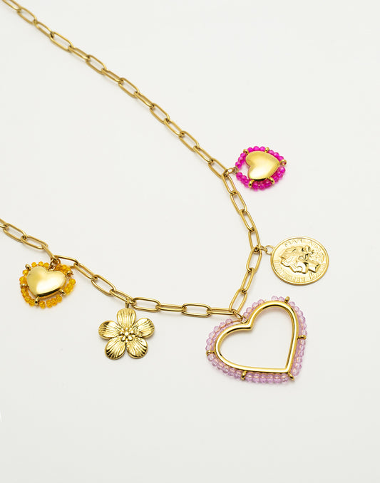 - Paperclip ketting met bloemen en hartjes bedels