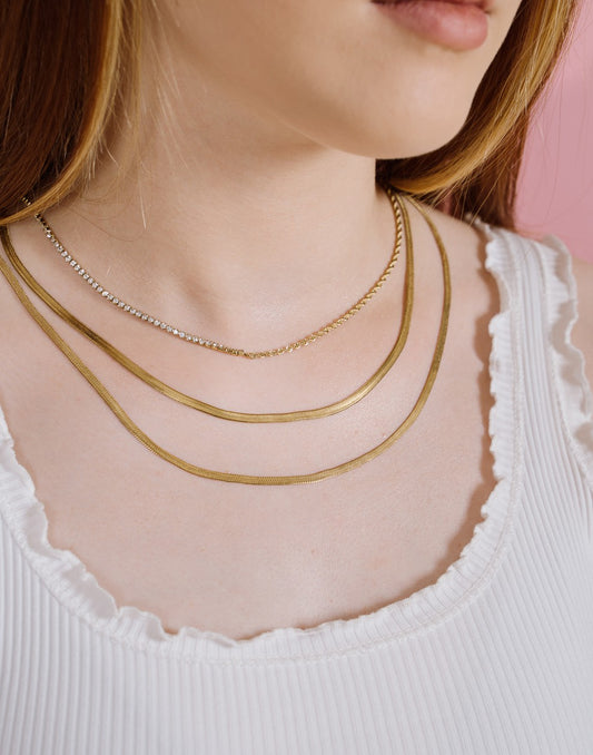 Ketting tennis en gedraaide schakel goudkleurig