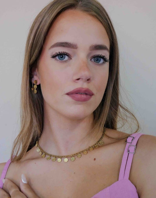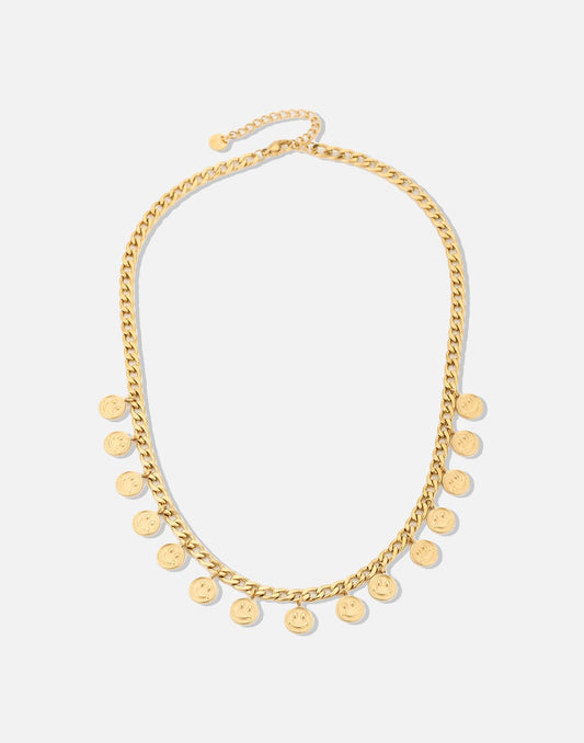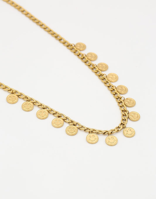 schakelketting met smiley muntjes goudkleurig