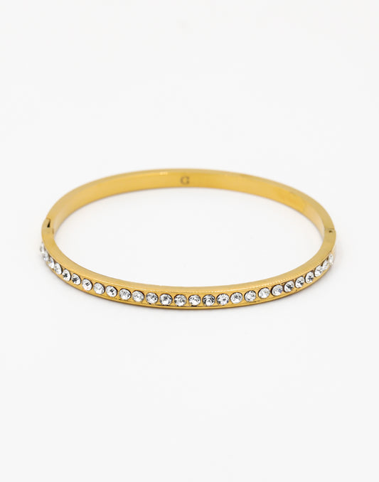 - Goudkleurige bangle met ronde steentjes