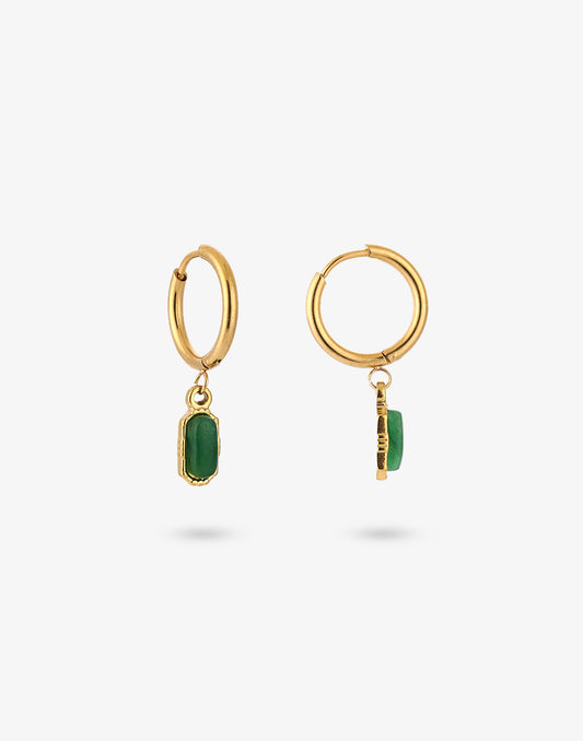 - Goudkleurige creolen met ovale gekleurde steen