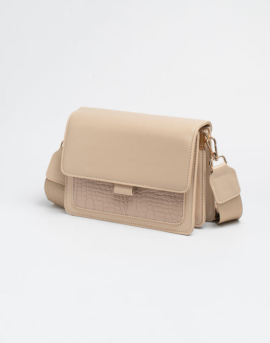 Crossbody Tas Croco Beige - Kunstleren Schoudertas