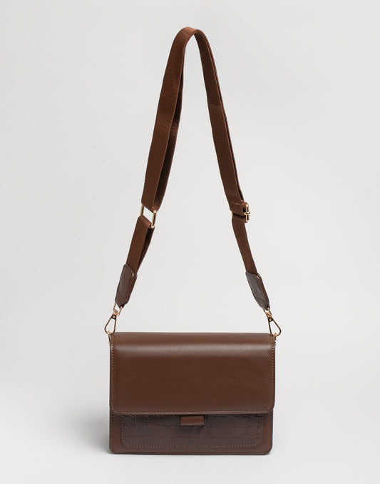 Crossbody Tas Croco Bruin - Kunstleren Schoudertas