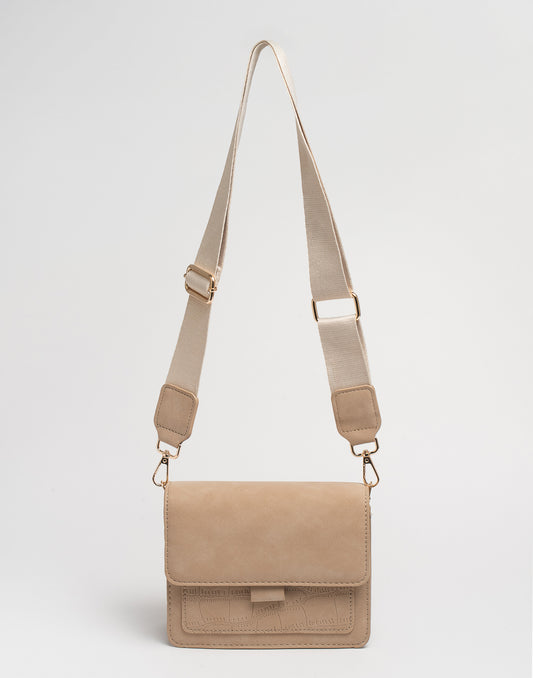 Crossbody Tas Faux Suede Beige - Luxe Schoudertas