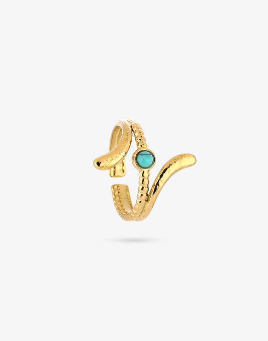 - Goudkleurige dubbele ring met ronde steen turquoise