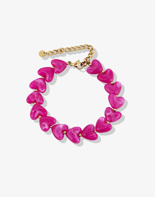 Hartjes kralenarmband fuchsia