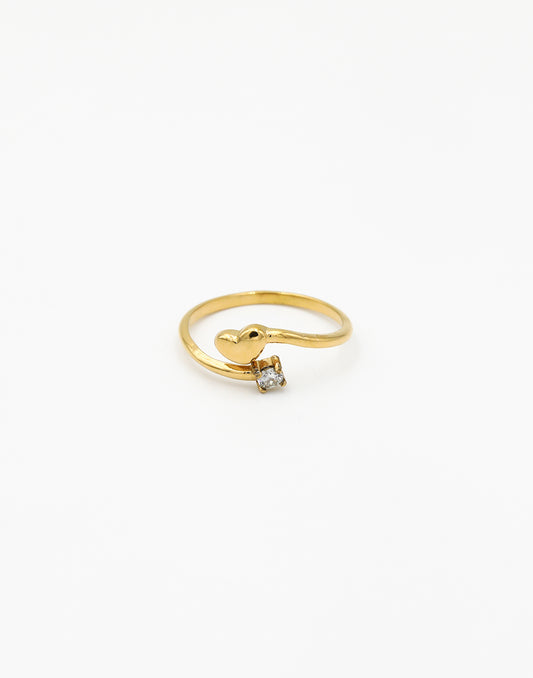 - Goudkleurige ring met hartje en ronde steen