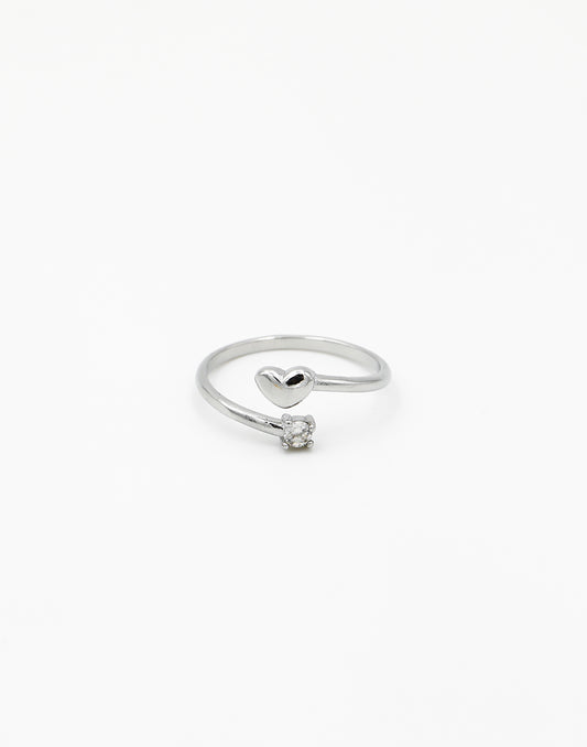 - Zilverkleurige ring met hartje en ronde steen