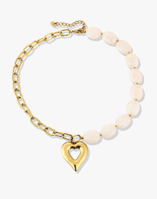 - Kralenketting met ovale kralen, grote schakels en hart hanger