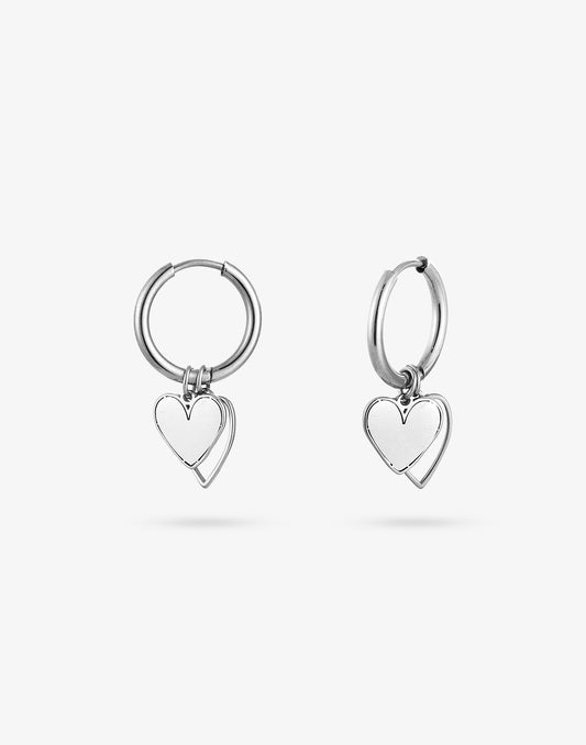 Oorringen dubbel hartjes zilverkleurig
