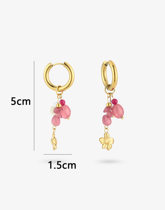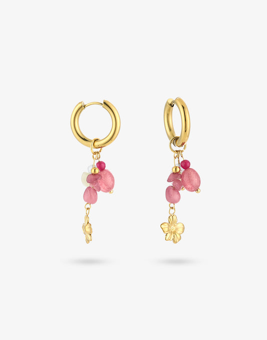 Oorringen roze steentjes met bloem bedel