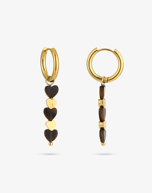 Oorringen verschillende hartjes bruin