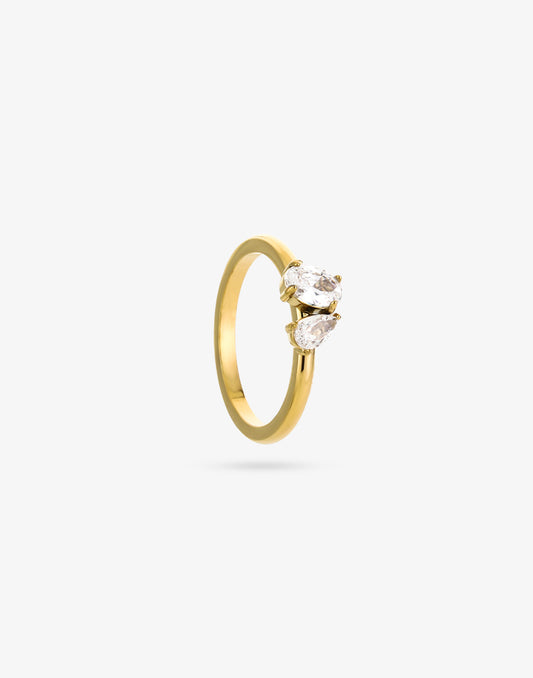 Ring dubbele steen goudkleurig