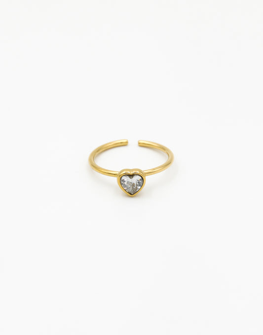 - Goudkleurige ring met transparante steen in hartjes-vorm