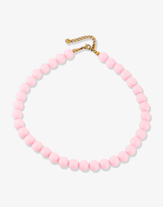 Deze zomerse roze kralenketting is een tijdloze toevoeging aan je sieradencollectie. De ketting is vervaardigd van hoogwaardig Stainless Steel, waardoor hij duurzaam is en zijn mooie uitstraling behoudt.