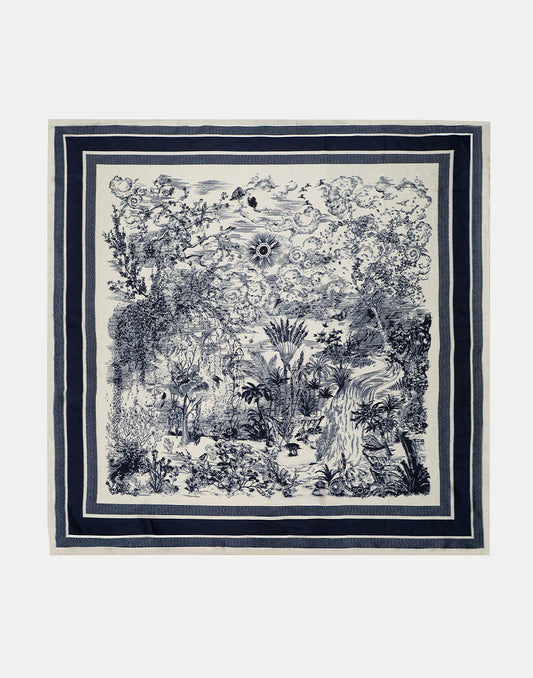 Vierkant Sjaaltje Nature Navy - Zijdezacht met Print