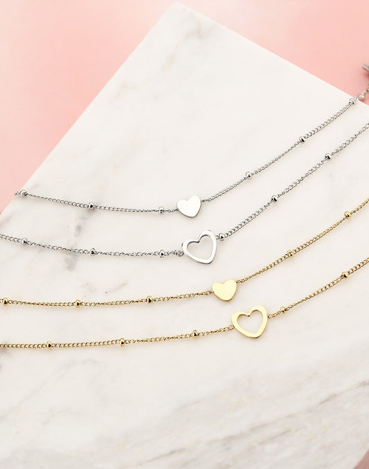 - Armband setjes bestaande uit 2 armbandjes. Een armbandje met hartje, het andere armbandje heeft een open hartje.