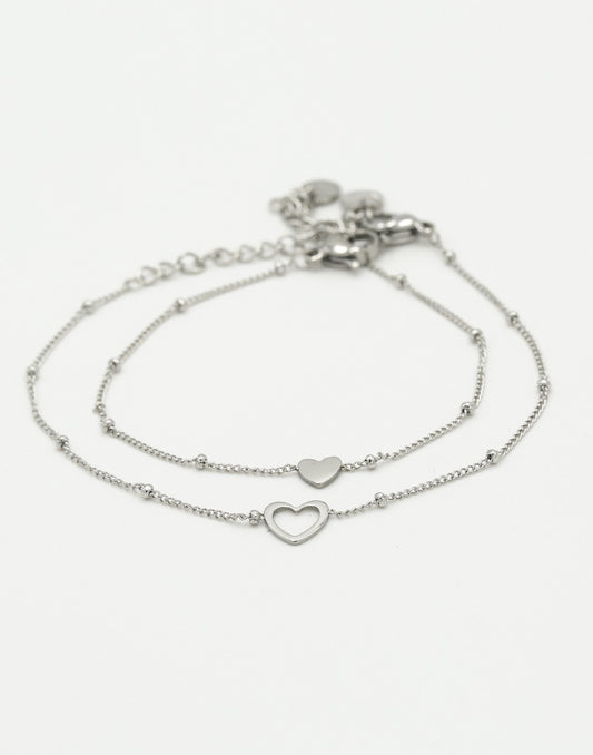 - Armband setjes bestaande uit 2 armbandjes. Een armbandje met hartje, het andere armbandje heeft een open hartje.